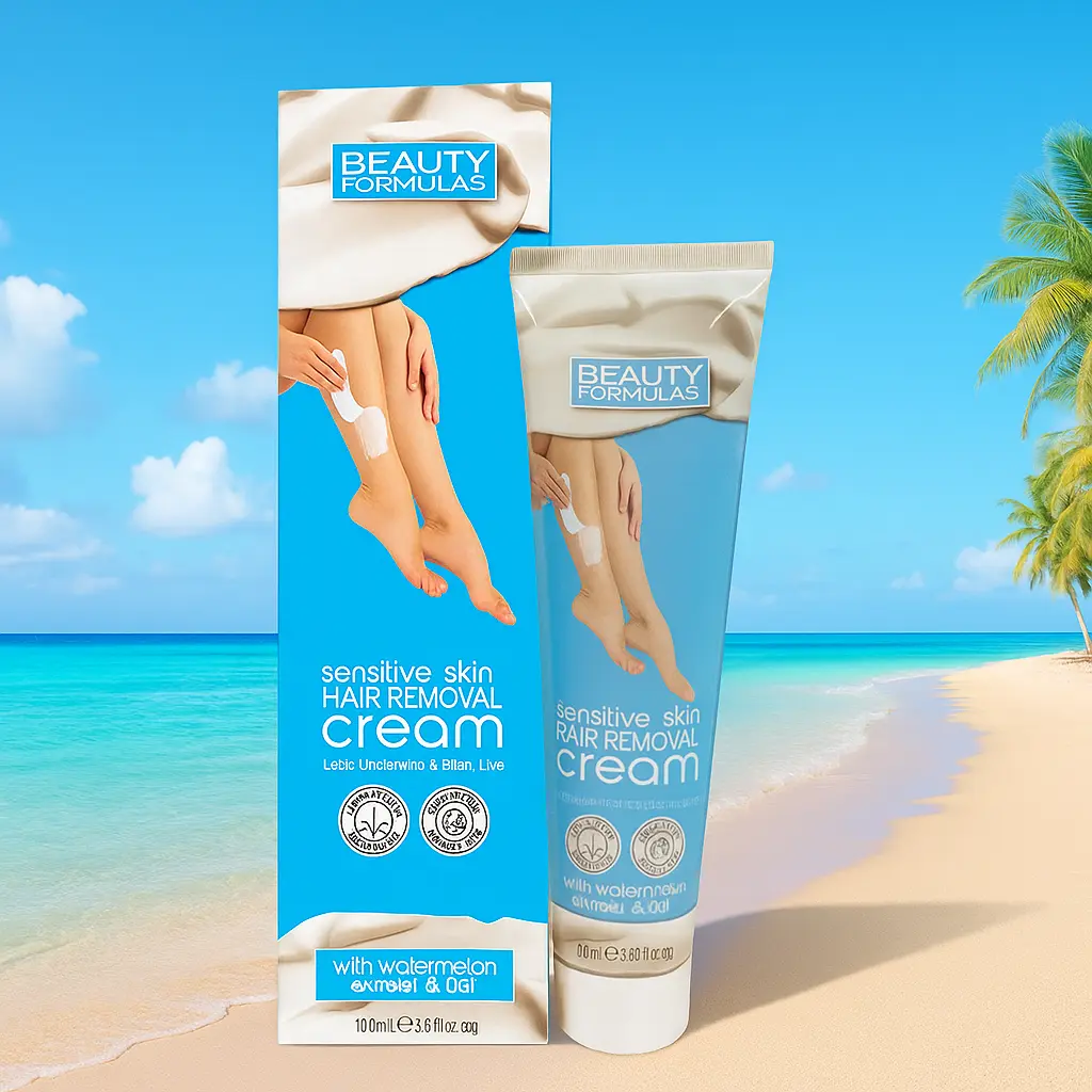 💙 Beauty Formulas – Crème Dépilatoire Peaux Sensibles à l’Extrait de Pastèque et d’Avoine (100 ml)