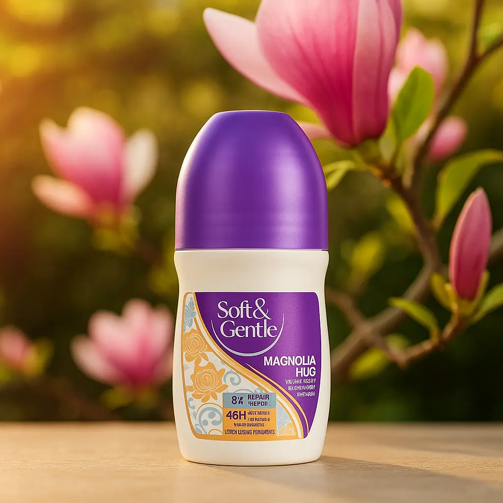 Le déodorant roll-on Soft & Gentle Magnolia Hug combine efficacité anti-transpirante 48 heures et parfum délicat de poire et magnolia pour une sensation de fraîcheur et de confort longue durée.