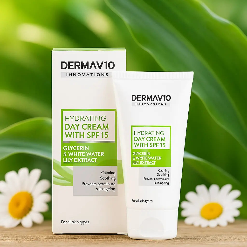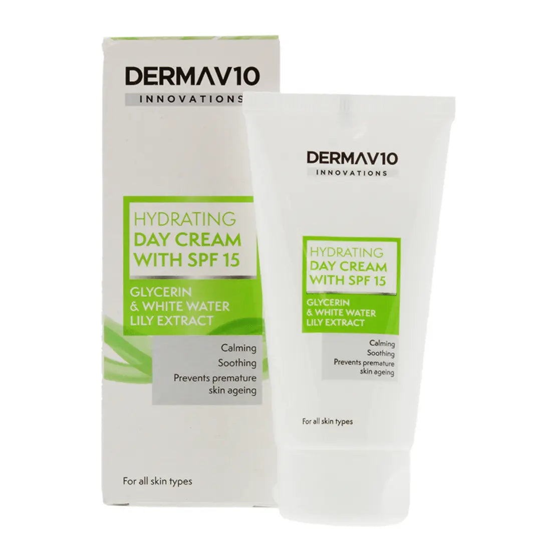 Dermav10 Crème de jour hydratante à la glycérine et à l'extrait de nénuphar blanc SPF15 - 50ml