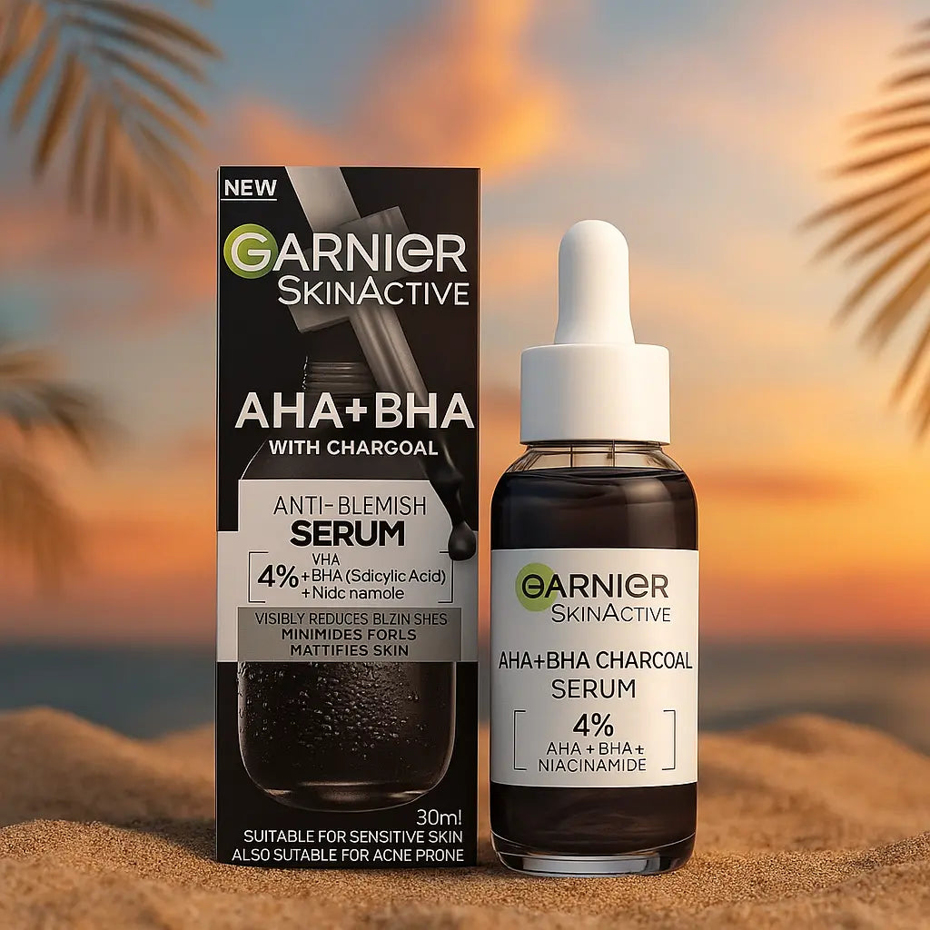 Le Garnier SkinActive AHA + BHA Charcoal Serum est un sérum anti-imperfections enrichi à 4 % d’actifs puissants : AHA, BHA (acide salicylique), niacinamide et charbon végétal. Il est spécialement conçu pour les peaux à tendance acnéique ou grasses, y compris les peaux sensibles. Sa formule purifiante agit en profondeur pour améliorer visiblement la qualité de la peau.