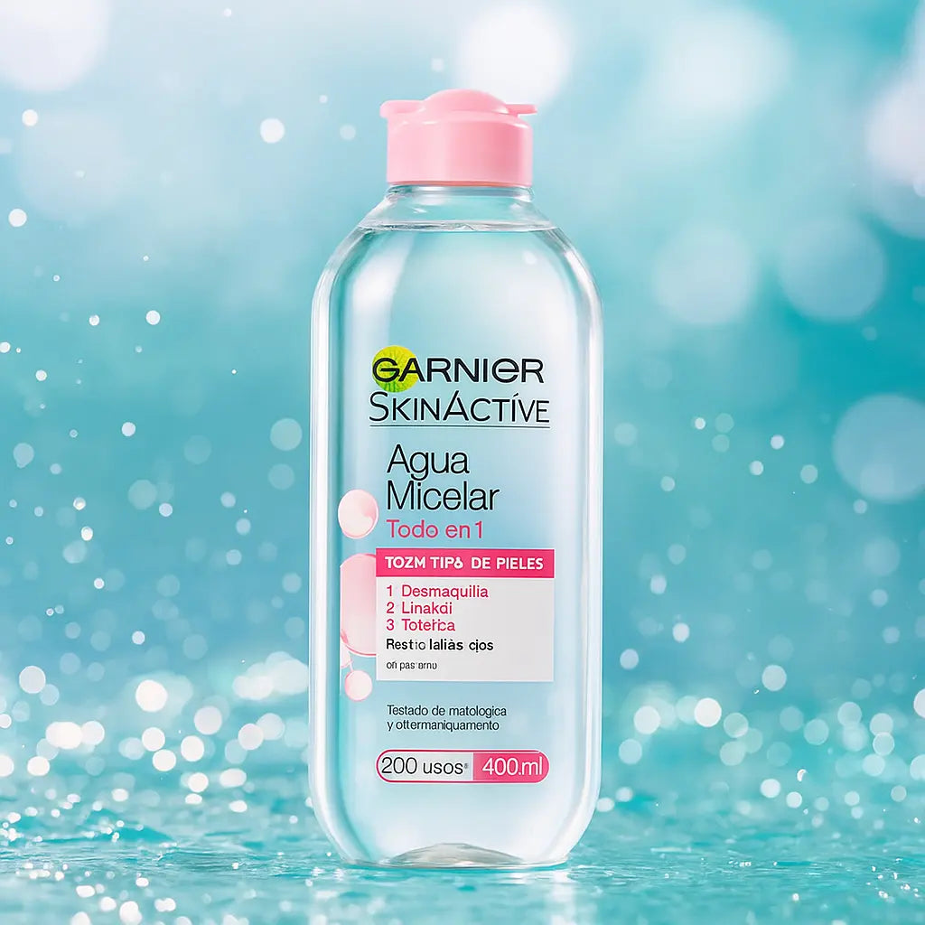 Eau micellaire tout-en-un pour tous types de peaux, même sensibles. Démaquille, nettoie et tonifie le visage, les lèvres et les yeux en un seul geste, sans rinçage, sans parfum et sans parabens. Testée dermatologiquement et ophtalmologiquement. Environ 200 utilisations par flacon.
