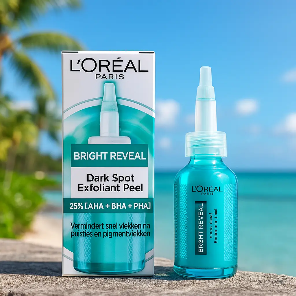 Le L’Oréal Paris Bright Reveal Dark Spot Exfoliant Peel est un soin intensif formulé avec 25 % d’acides exfoliants (AHA, BHA et PHA) pour lisser la texture de la peau, atténuer les taches brunes et raviver l’éclat naturel du teint.