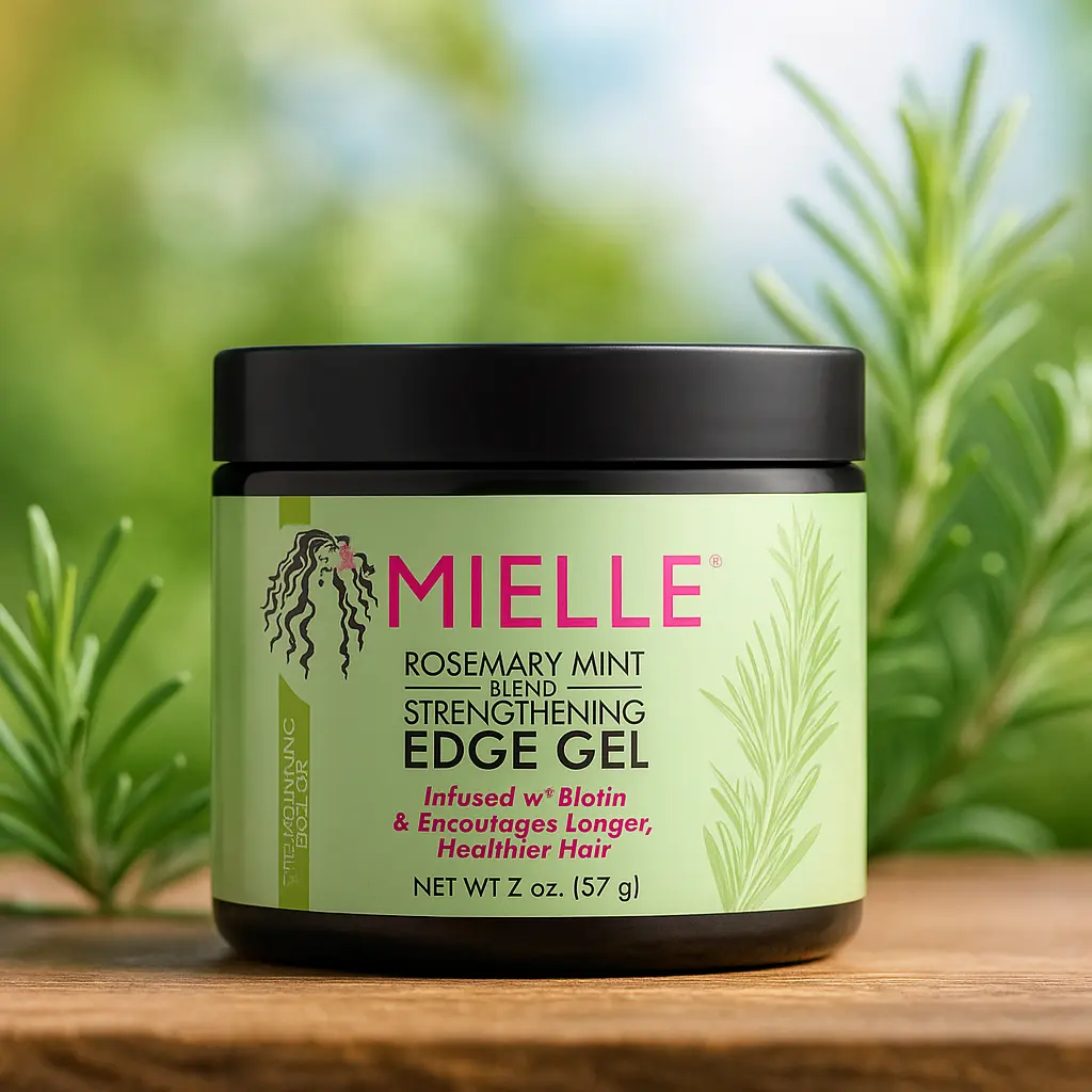 Gel coiffant pour contours/« baby hairs » infusé à la menthe & au romarin avec biotine. Fixe, lisse et apporte de la brillance sans cartonner ni laisser de résidus blancs.