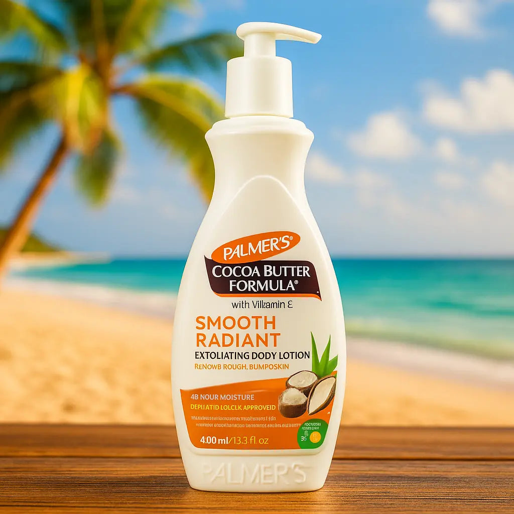 La lotion est enrichie en beurre de cacao, ce qui est bien connu pour ses propriétés hydratantes et nourrissantes. Le beurre de cacao aide à maintenir l'hydratation de la peau en profondeur, ce qui est crucial pour éviter la sécheresse et la desquamation. De plus, la lotion contient de la vitamine E, un puissant antioxydant qui protège la peau des dommages causés par les radicaux libres.