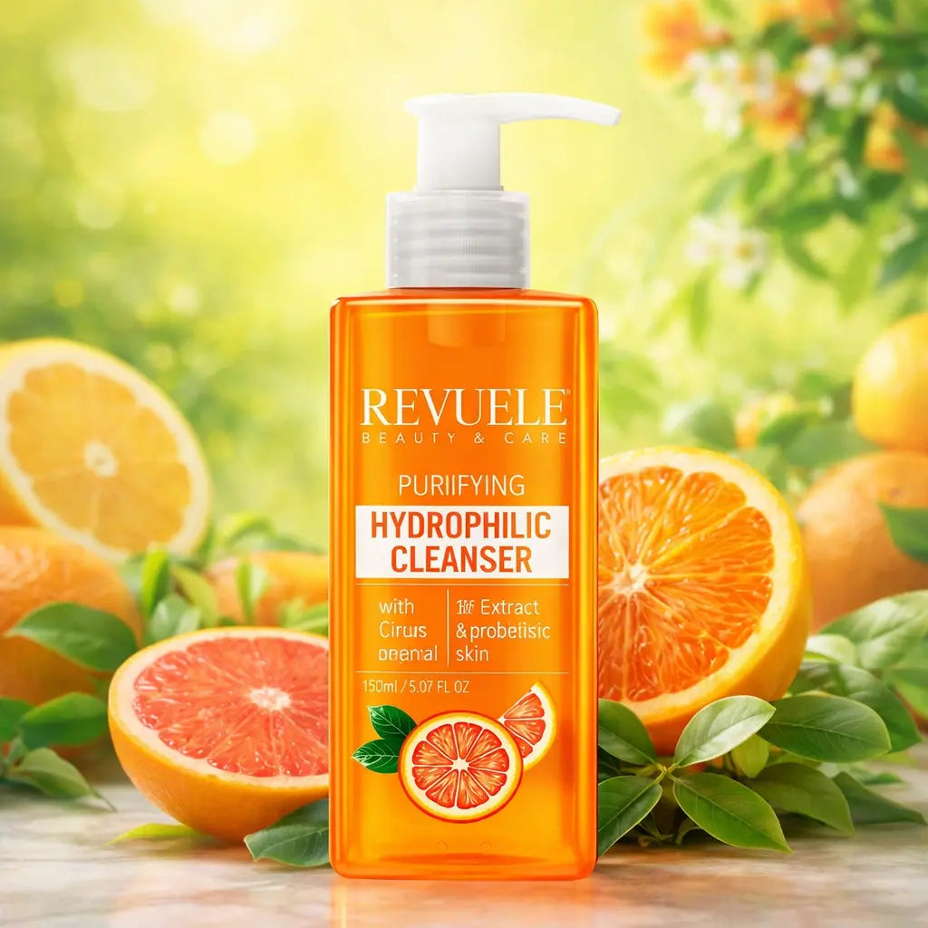 le nettoyant hydrophile purifiant aux agrumes revuele est un gel nettoyant spécialement formulé pour les peaux grasses et à imperfections.