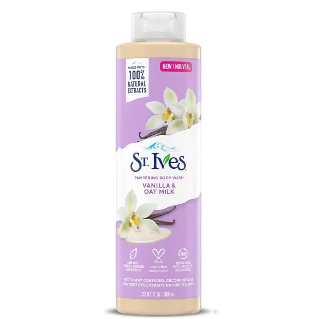 St Ives Pampering Gel douche vanille et lait d'avoine aux extraits 100 % naturels 650 ml