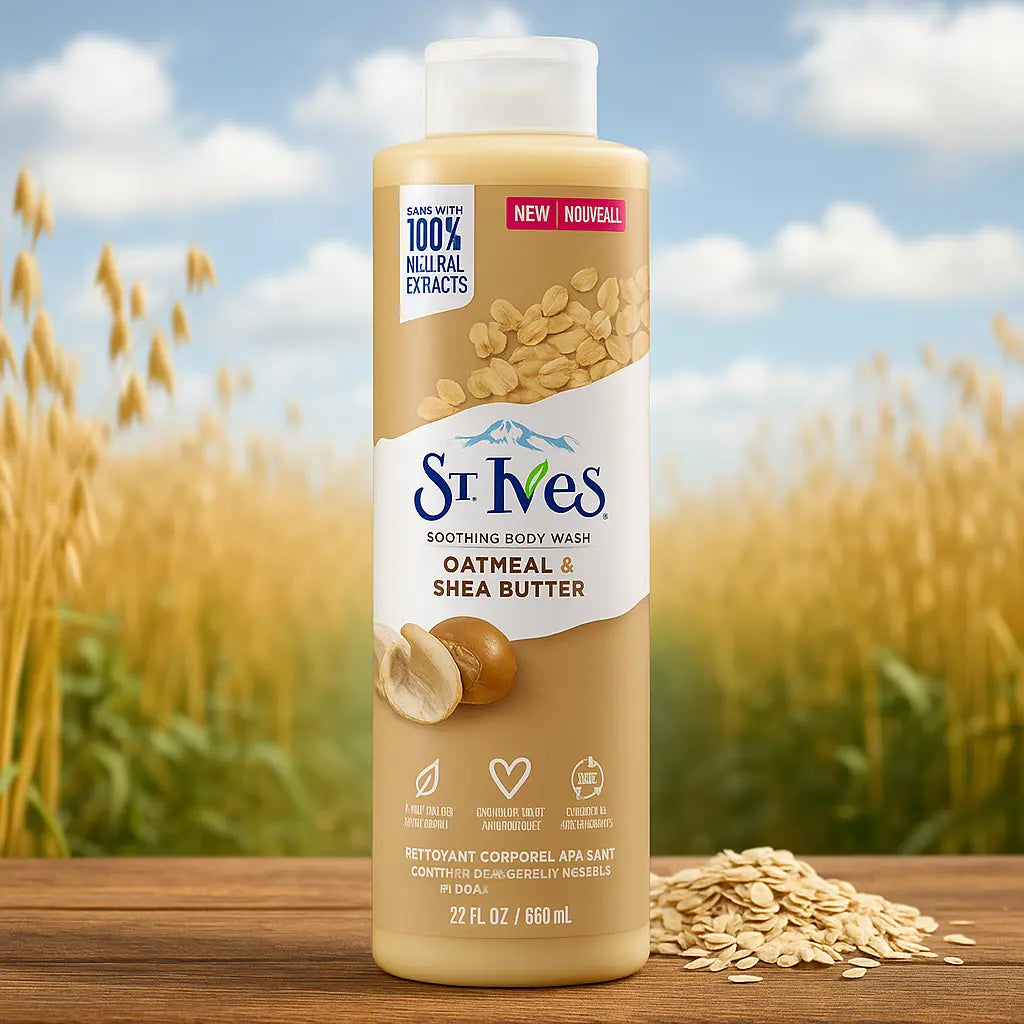 St Ives Gel douche, flocons d'avoine et beurre de karité aux extraits 100 % naturels